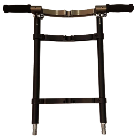 - Middle: track wheel set for straight and curved tracks, push bar to be mounted on either side of the dolly, steering lock for track mode and straight ahead travel, space for Euro mount and air pump